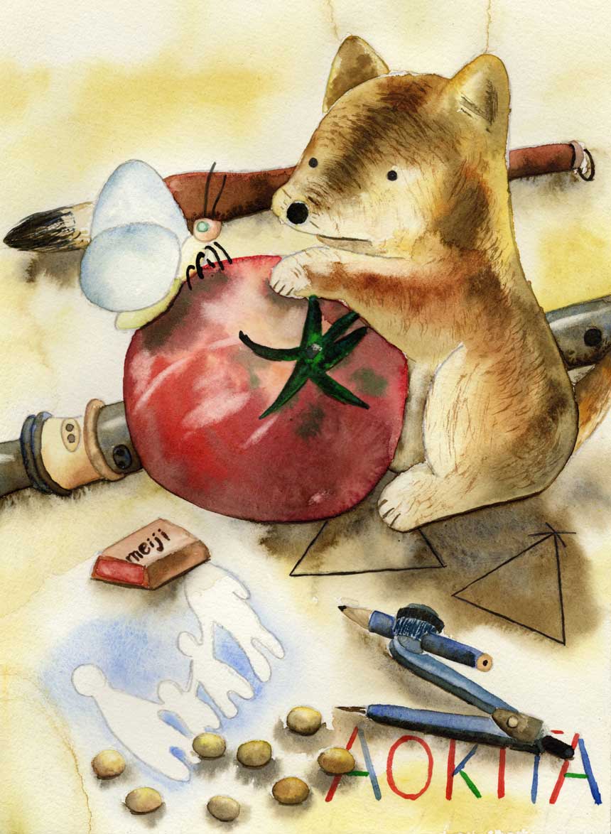水彩絵の具で年賀状の絵を描きました。戌年、国語の「ちいちゃんのかげおくり」、総合の大豆、社会科見学のトマト。音楽のリコーダー、書写の書き初め、ローマ字、理科社会など三年生は初めてがいっぱいでした。